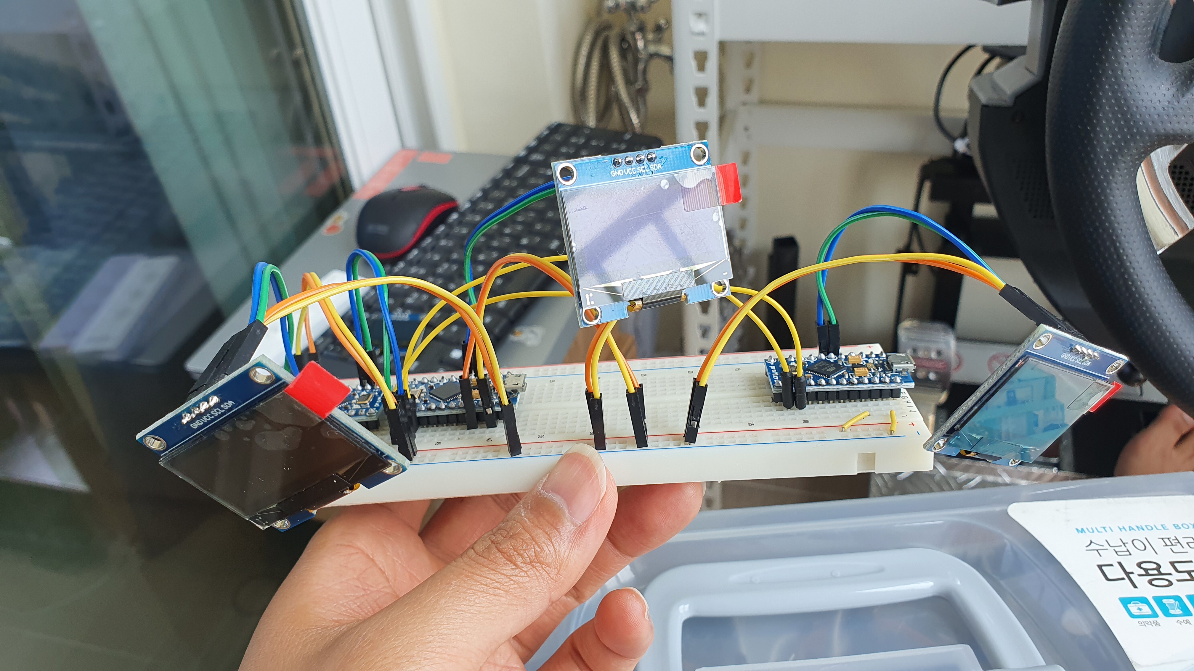 제가 작업할때 가지고 있는 아두이노 micro pro가 3개 밖에 없어서 액정 3개만 연결했는데, 추가로 구매하여 나중에 메모리사용률, 드라이브 사용률도 2개 액정을 추가할 예정입니다.