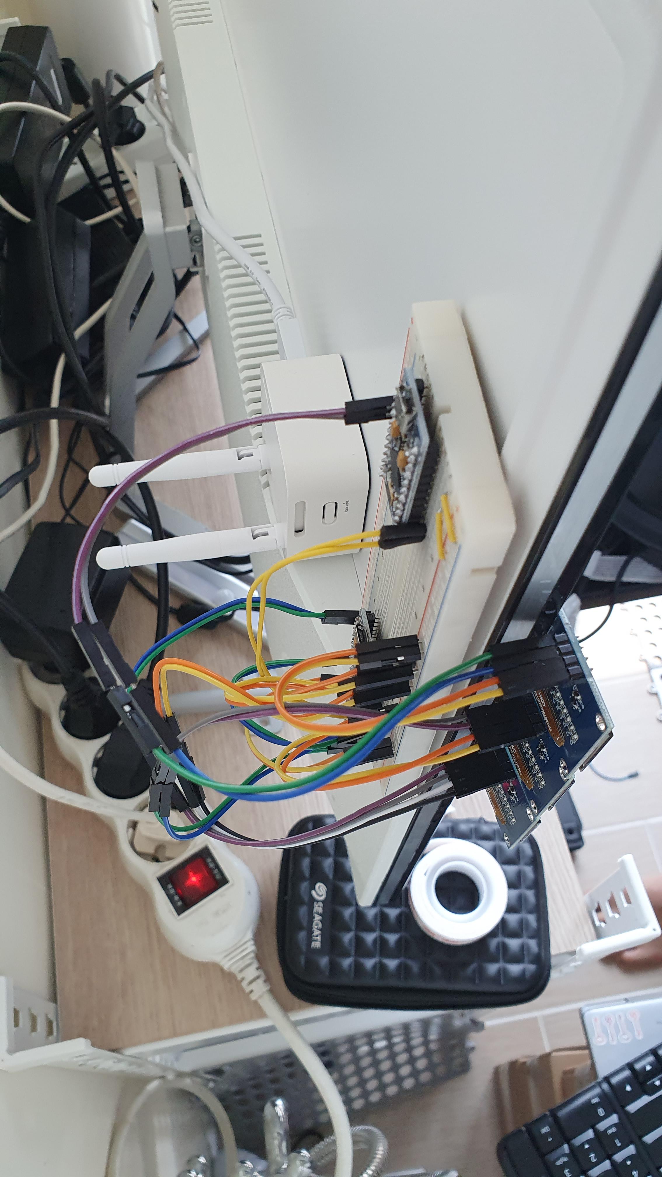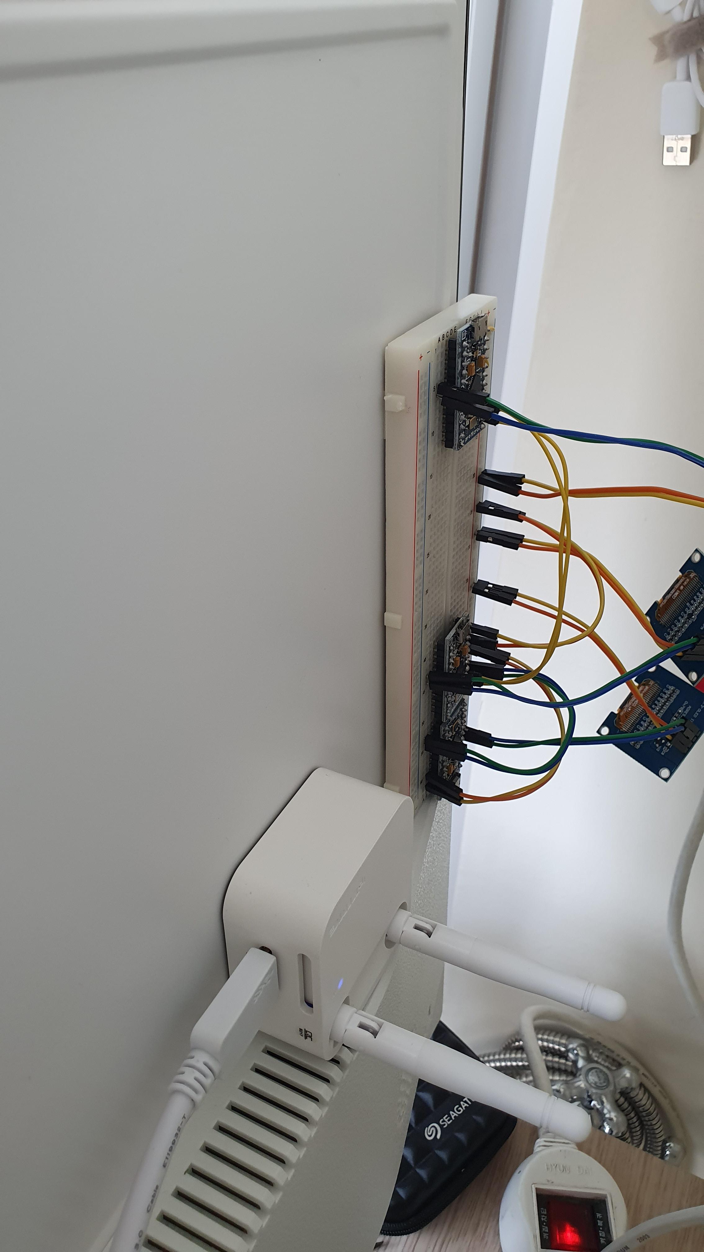 회로가 구성된 브레드보드는 모니터 뒤편에 부착하였습니다.