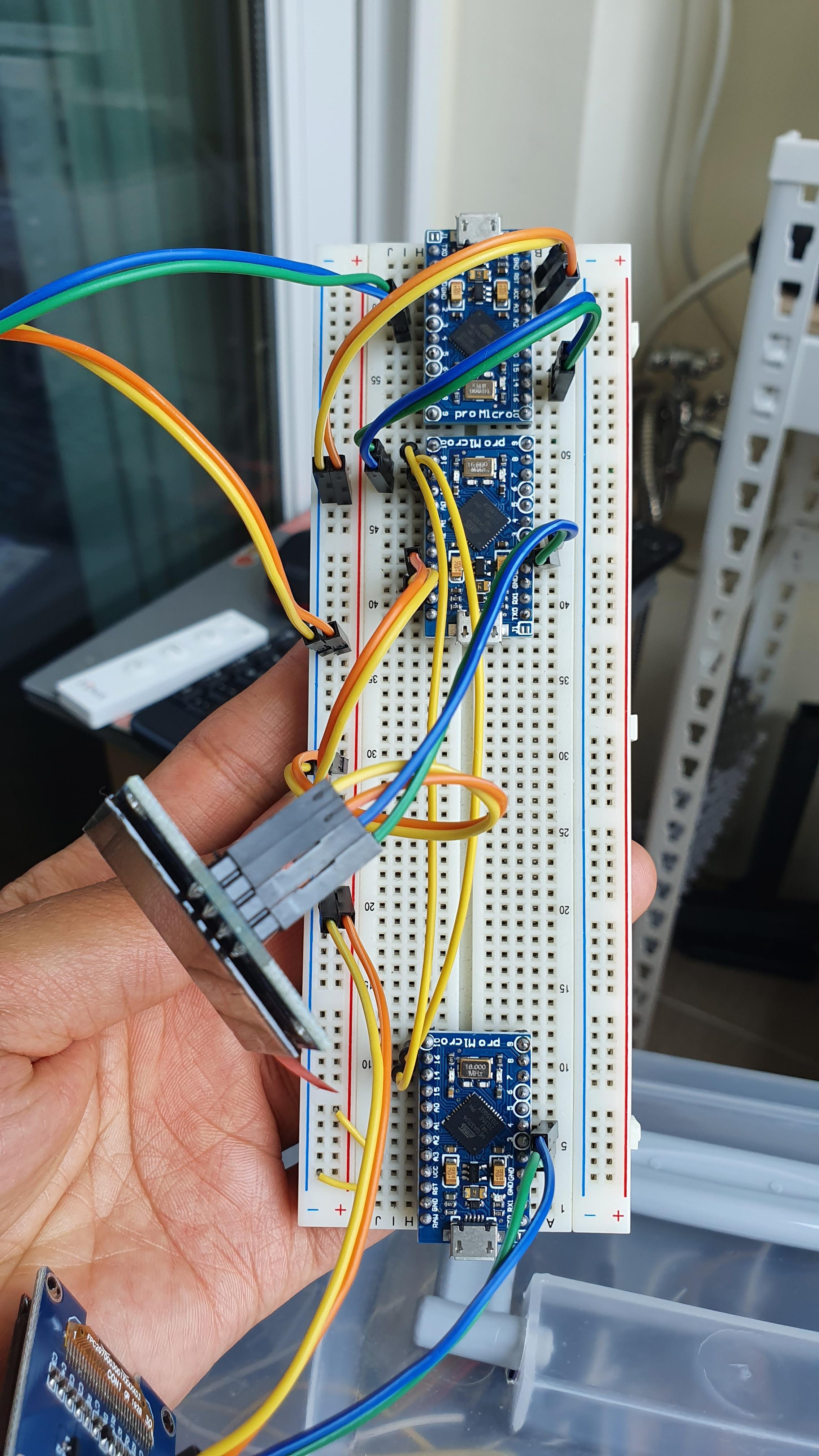 제가 작업할때 가지고 있는 아두이노 micro pro가 3개 밖에 없어서 액정 3개만 연결했는데, 추가로 구매하여 나중에 메모리사용률, 드라이브 사용률도 2개 액정을 추가할 예정입니다.