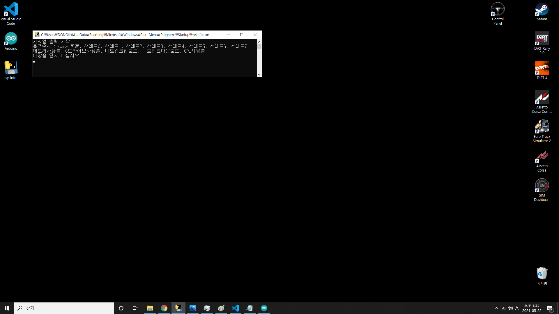 PC용 프로그램은 윈도우 시작시 자동으로 실행되도록 추가해 놓았기 때문에 윈도우 부팅이 끝나면 자동으로 실행되고, 실행과 동시에 액정에 정보들이 뜨기 시작합니다.