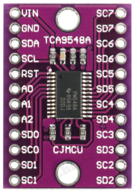 멀티플렉서는 보통 TCA9548A 모듈을 많이 사용하며, 최대 8개의 동일한 address를 가진 디바이스를 연결할 수 있습니다.