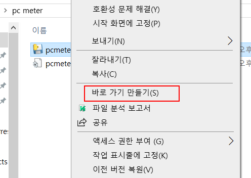 2. 메뉴에서 바로가기 만들기 선택