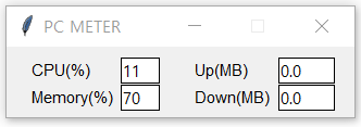 CPU, 메모리 사용량과 인터넷 업로드, 다운로드를 모니터링 하는 프로그램입니다.